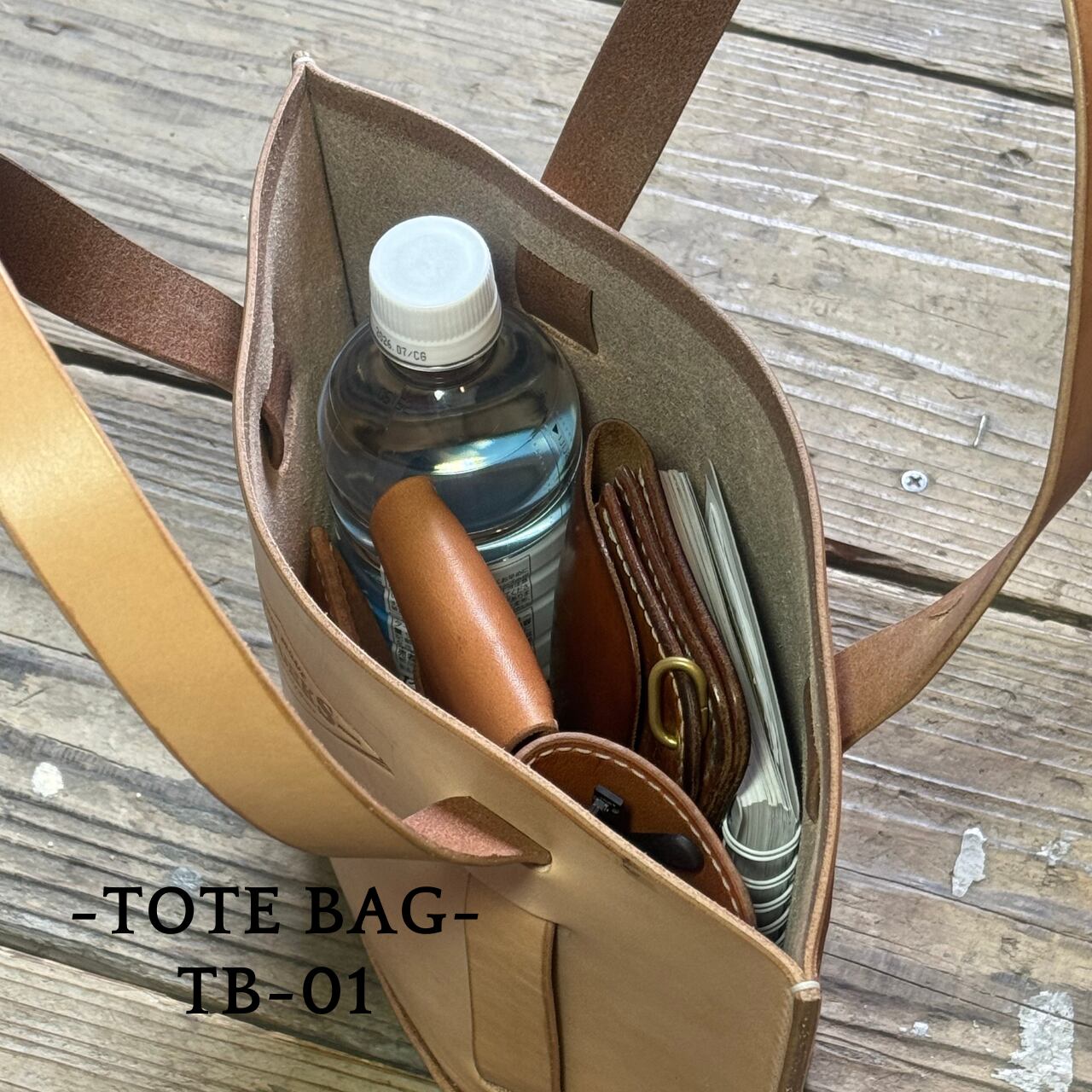 ペットボトル、財布、手帳、ポーチはもちろん、コンパクトな折り畳み傘などもしっかり収まるトートバッグです。