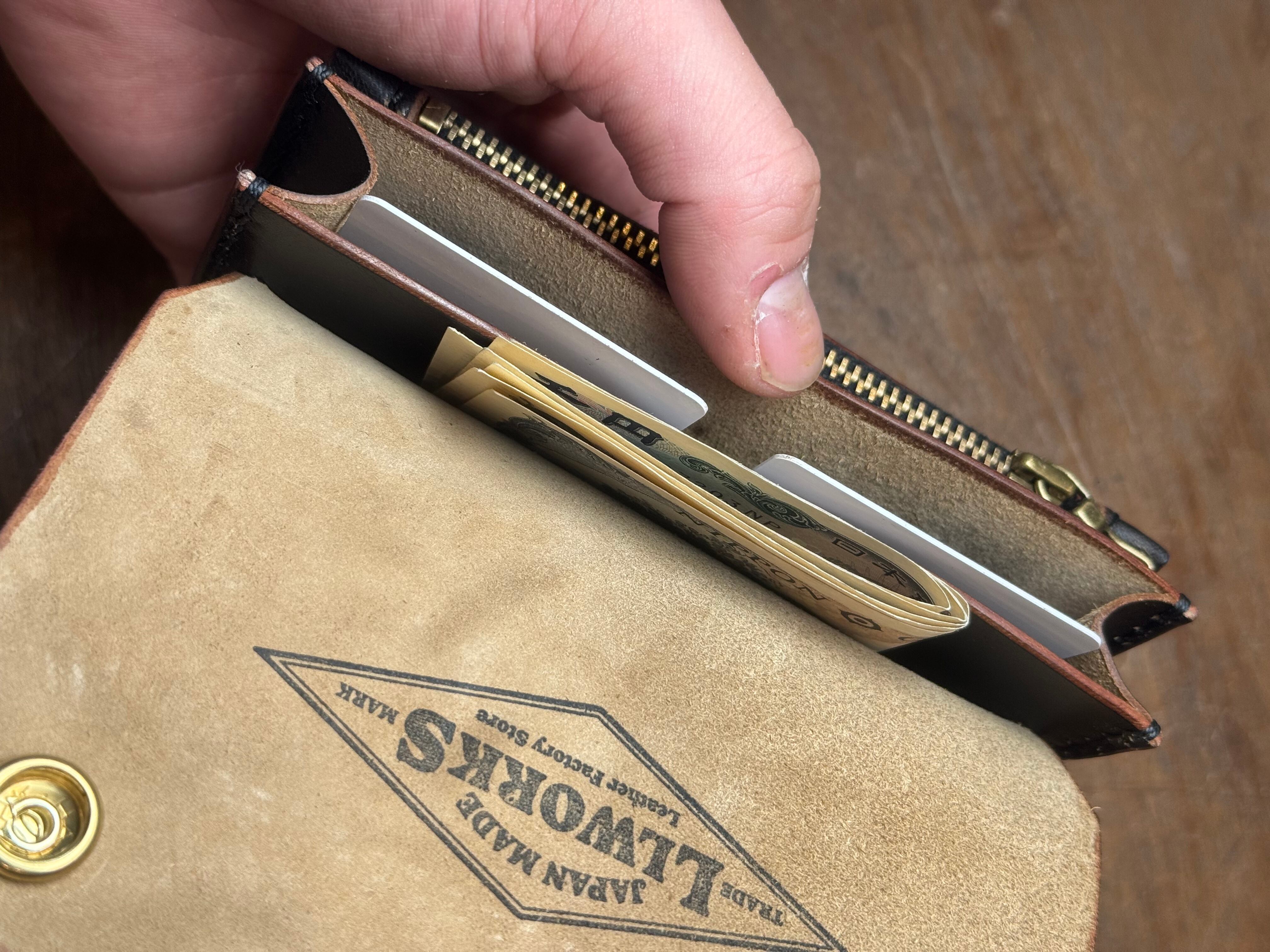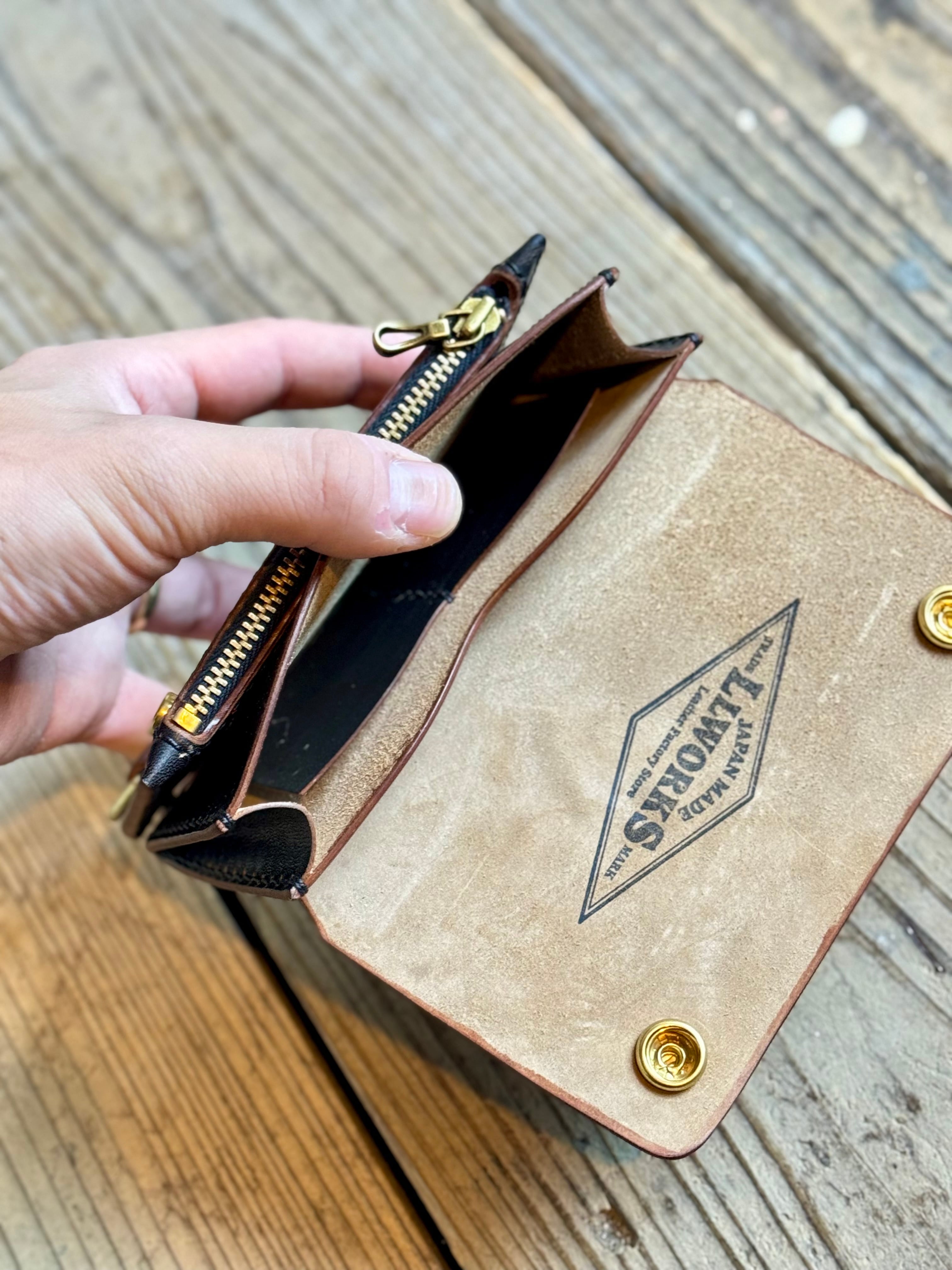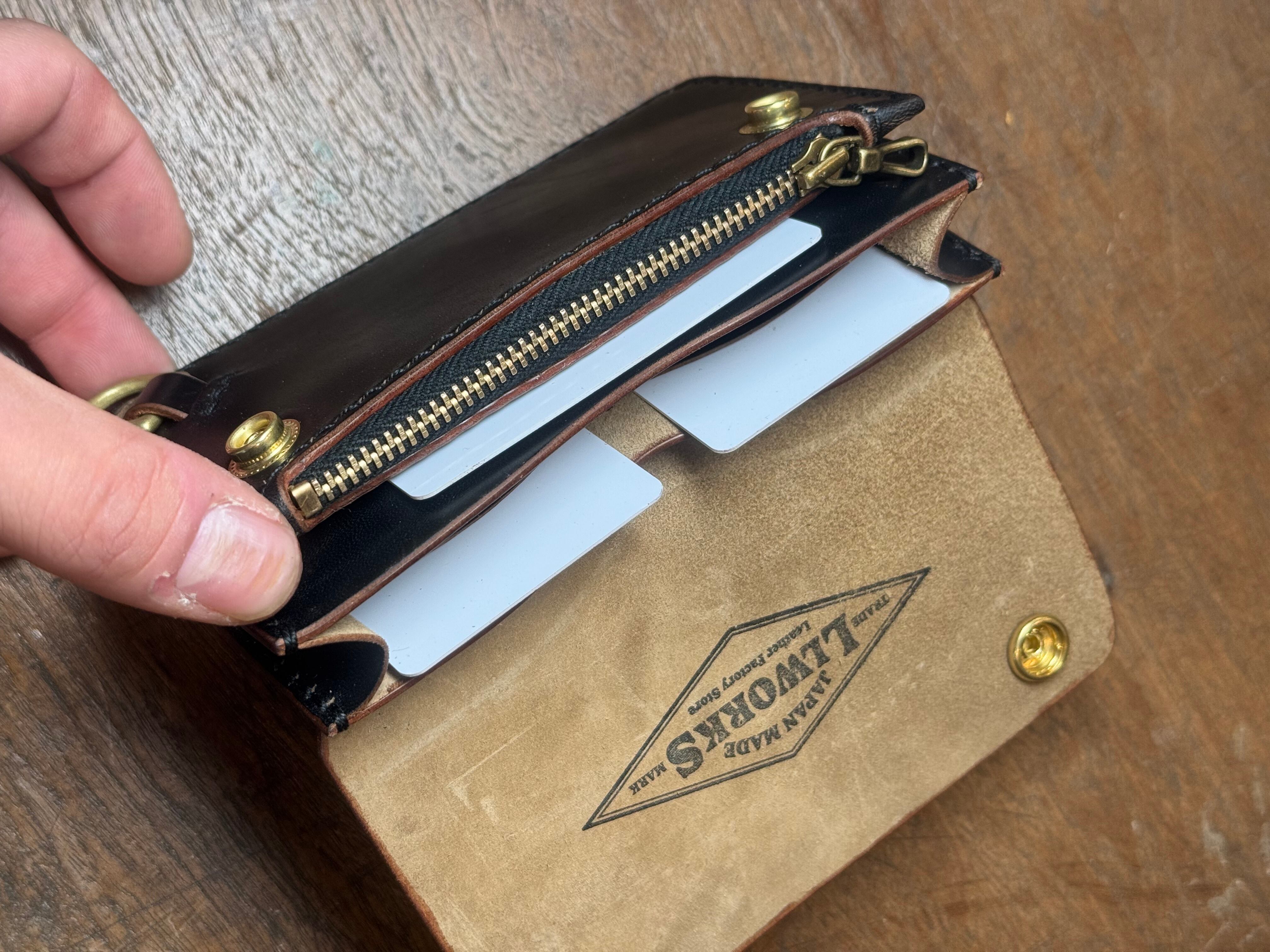 ご購入になり使う時は硬いかも知れませんが、使ううちに柔らかくなり、自分だけの唯一無二のお財布になります。